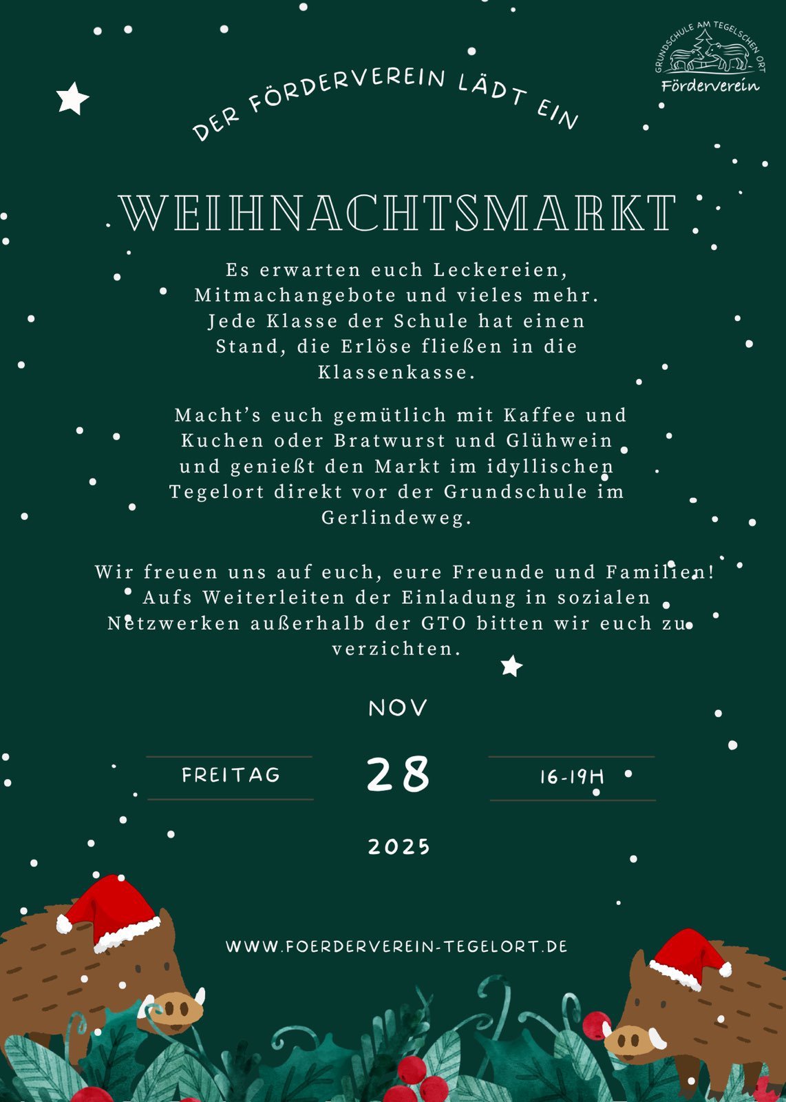 auch dieses Jahr bitten wir um eure zahlreiche Unterstützung bei den Ständen des Fördervereins unseres diesjährigen Weihnachtsmarkts.
